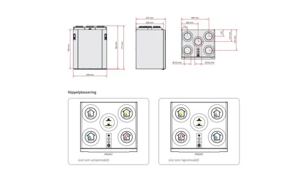 Styres som standard via Flexit GO-appen og kan kompletteres med diverse tilbehør (trådløst eller kablet), f.eks. styrepanel, fuktsensor, CO2-sensor.
