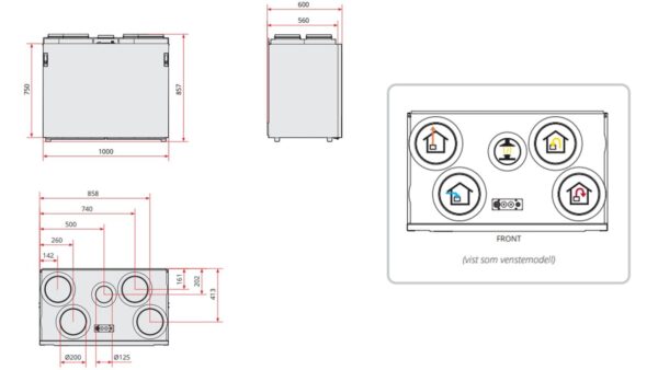 Arbeidsområde opptil 700 m3/h, ideelt for boliger på 300-450 m2.