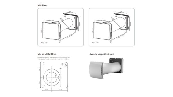 Aura One 160 mm monteres enkelt i yttervegg, og takler temperaturer ned til -20 °C. Den kan installeres alene, i par eller i grupper for effektiv soneventilasjon. Tilkobling og drift skjer raskt via app – og enheten kan også styres med eksterne sensorer eller inngå i smarthussystemer.