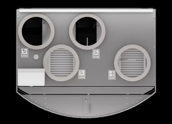 SAVE VTR 150/K R er utviklet for montering over komfyr og er en smart løsning der man ønsker å kombinere ventilasjonsaggregat og kjøkkenhette i én enhet. Dette sparer plass og gir en ryddig installasjon, samtidig som boligen får balansert ventilasjon med varmegjenvinning.