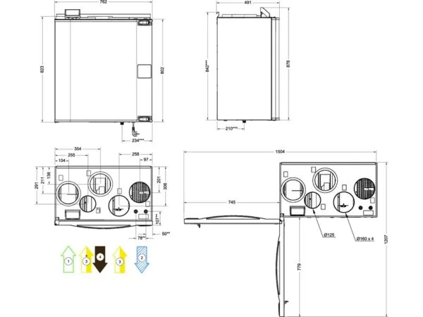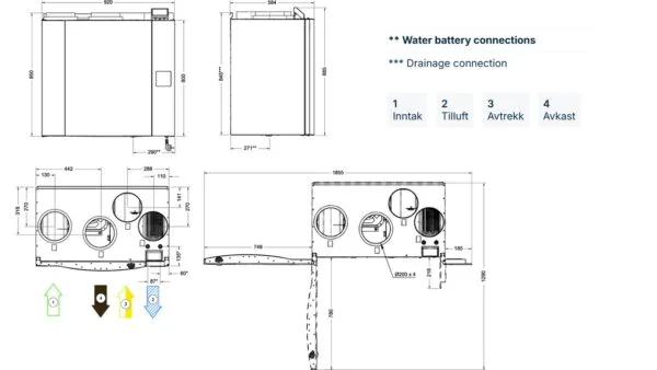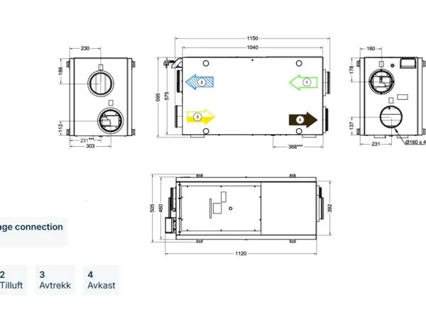Aggregatet er tilpasset for montering på vegg i bod eller vaskeromVentilasjonsaggregatet har en utvendig tilkoblingsboks med innganger og utganger for enkel installasjon og oppsett av eksterne følere, samt evt. eksterne varme- og kjølebatteri. Leveres med støpsel for jordet stikkontakt.
