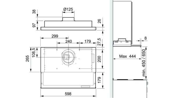 Slimline kjøkkenhette med integrert regulator for styring av ekstern AC-vifte. Designet for montering i overskap. Kjøkkenhetten er utstyrt med motordrevet spjeld, LED-belysning og metalltrådfilter.