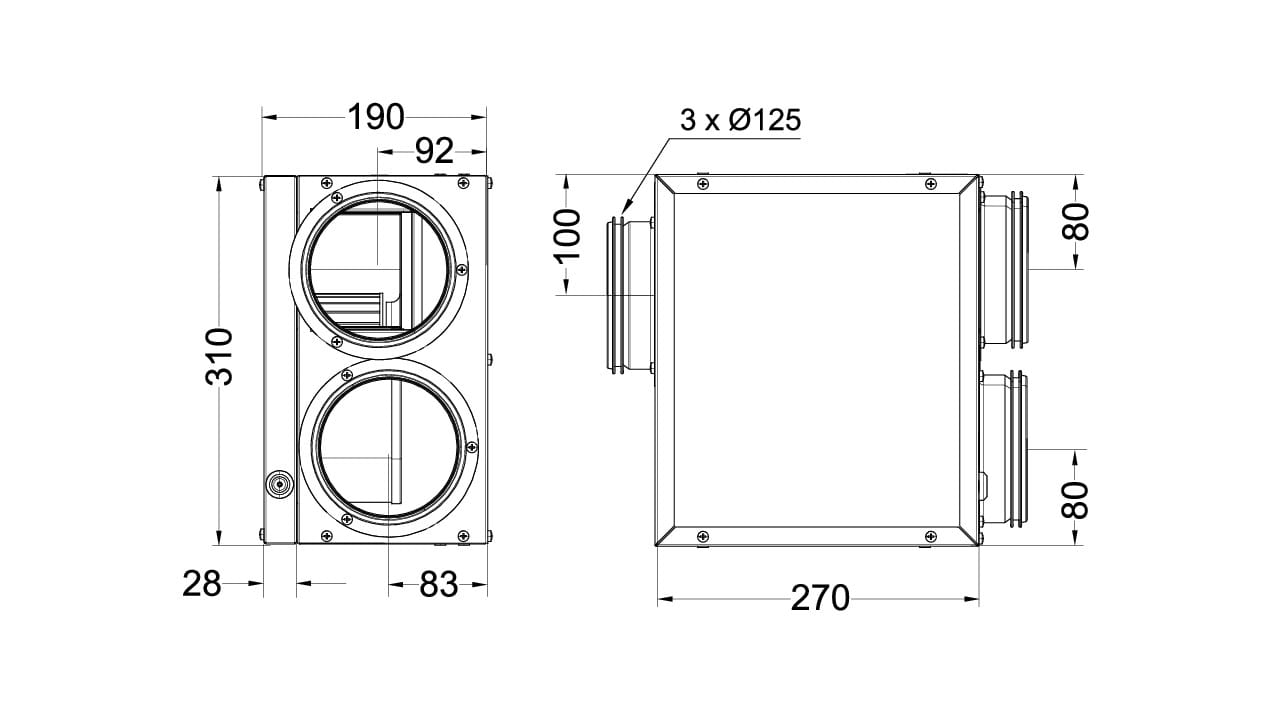 - Lavt spesifikt vifteeffektforbruk (SPI 0,208 W/(m³/h))